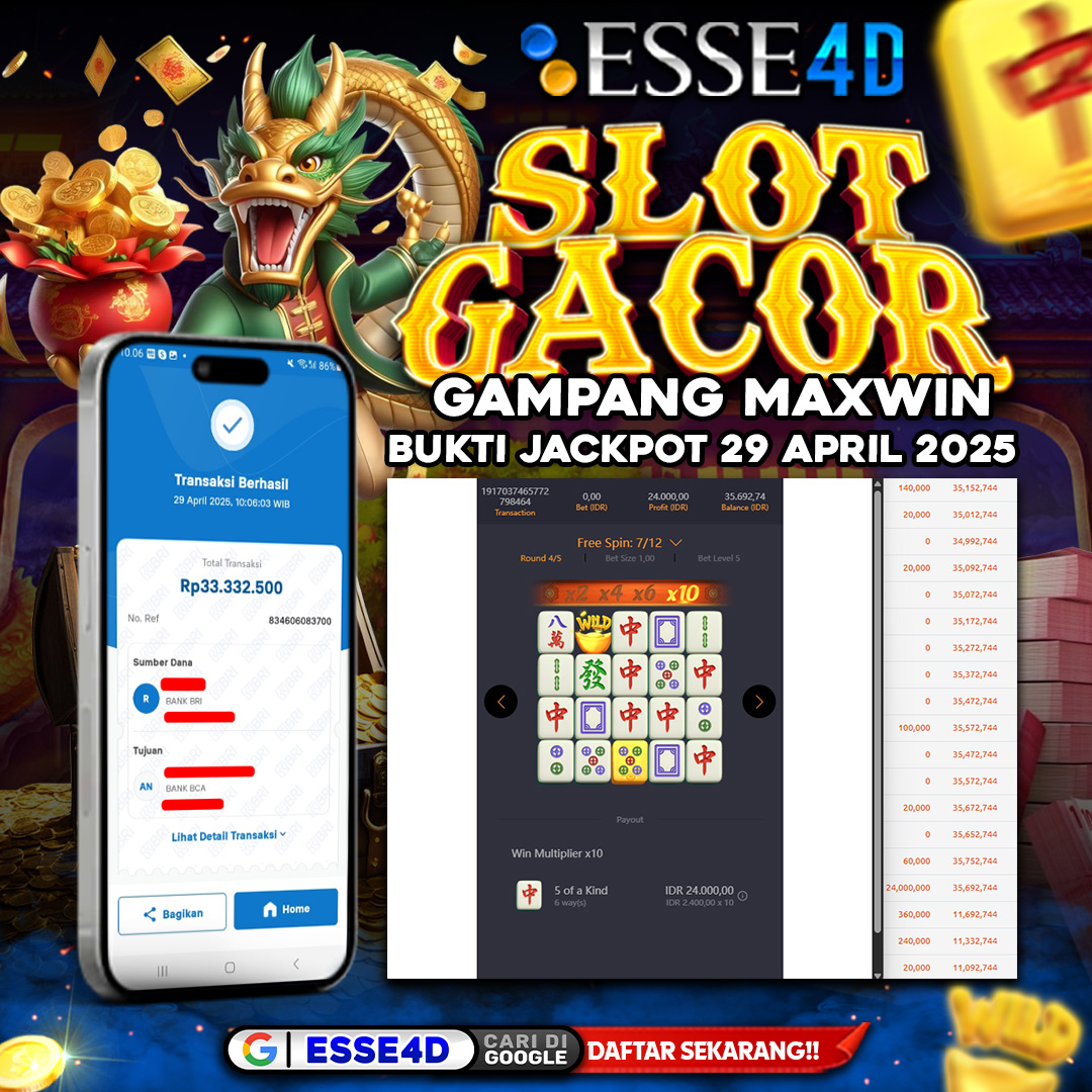 Masih ragu dengan ESSE4D? Kami situs terpercaya yang bayar kemenangan member tanpa ribet. Jangan khawatir, kemenanganmu pasti dibayar lunas!
